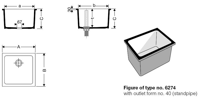 Popis:- výlevka bez přepadu